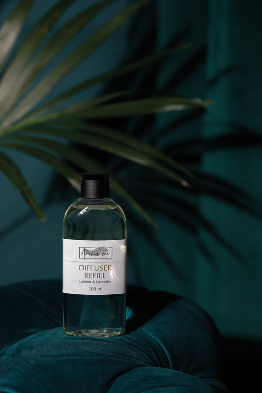 Set Up: Place the diffuser on a stable surface and insert the reeds into the bottle containing the essential oils.